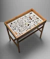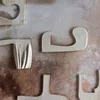Glyphs, Installation view in stairwell at 356 South Mission Rd, 2015, Painted silk, 160.5” x 65”, Photo credit: Brica Wilcox, courtesy the artist and 356 S. Mission Road